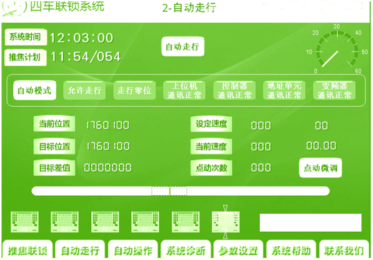根據(jù)生產(chǎn)工藝流程,自動確定行走的目標位置。根據(jù)距目標位置的遠近,自動控制機車的速度,在自動走行中到達目標位置時自動停止、自動對位。